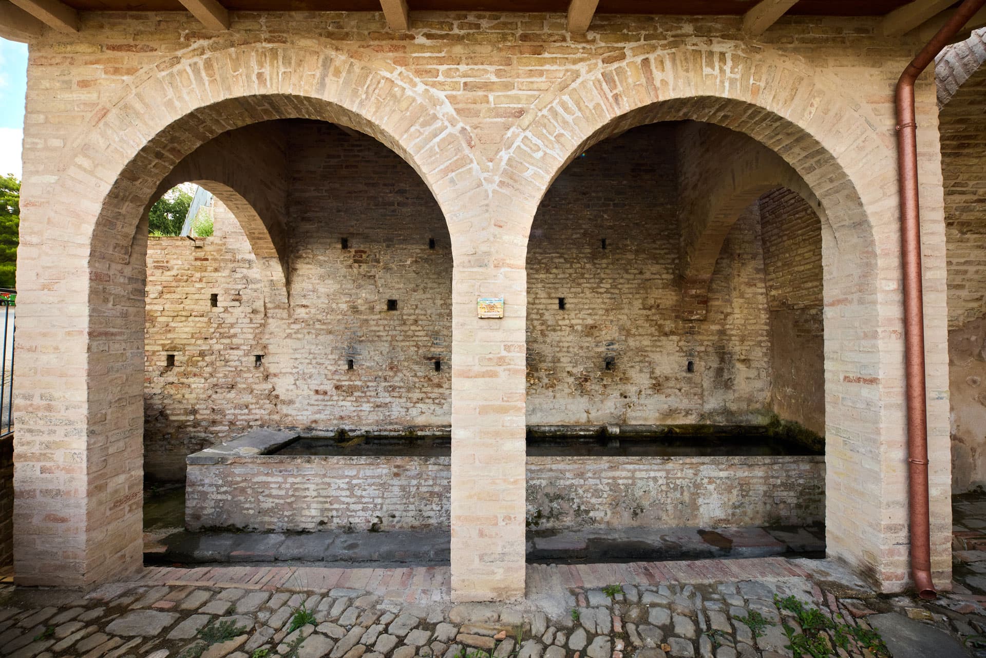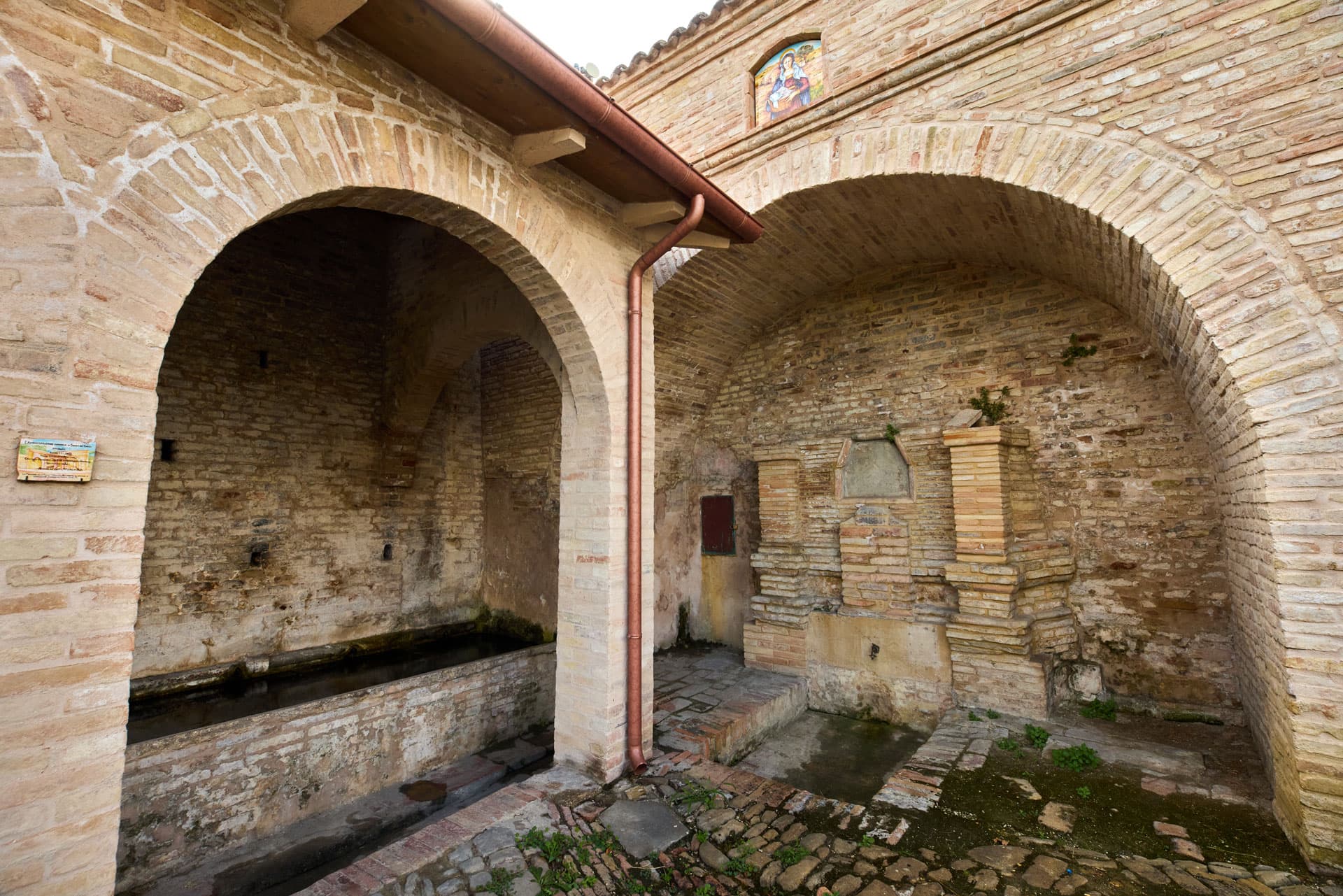 A questo elemento è stata successivamente aggiunta la vasca utilizzata dalla popolazione come lavatoio, oltre che per l’approvvigionamento dell’acqua a fini non potabili. Le vasche erano originariamente coperte da una tettoia sorretta da travi poggiate su pilastri in muratura. Nei primi anni ’70 del secolo scorso la tettoia è stata sostituita da una struttura ad archi che sorregge le travi in calcestruzzo armato prefabbricato, tavelle e coppi. Quest’ultimo intervento è stato realizzato con materiali non appropriati al manufatto antico a cui è stato accostato.